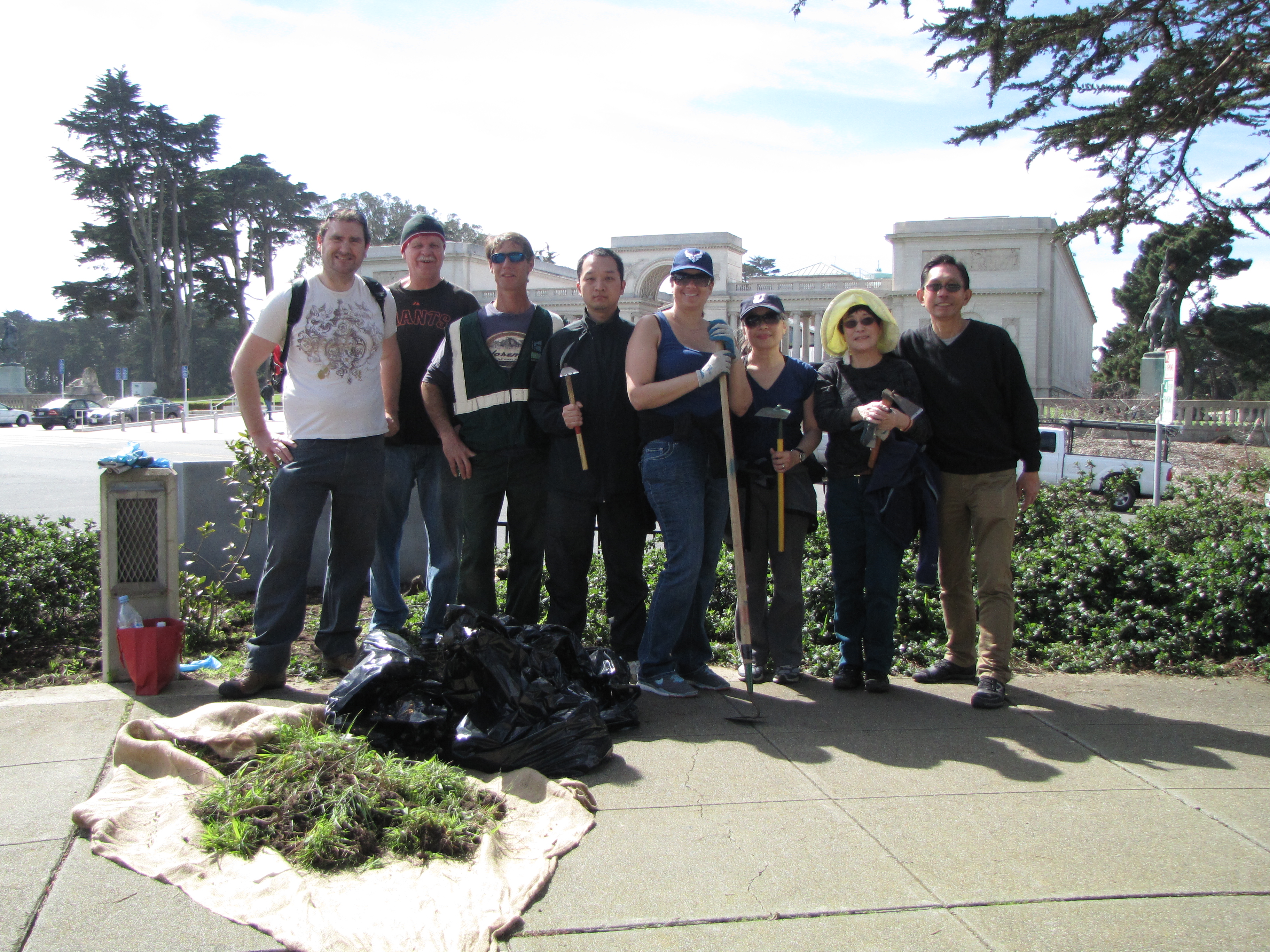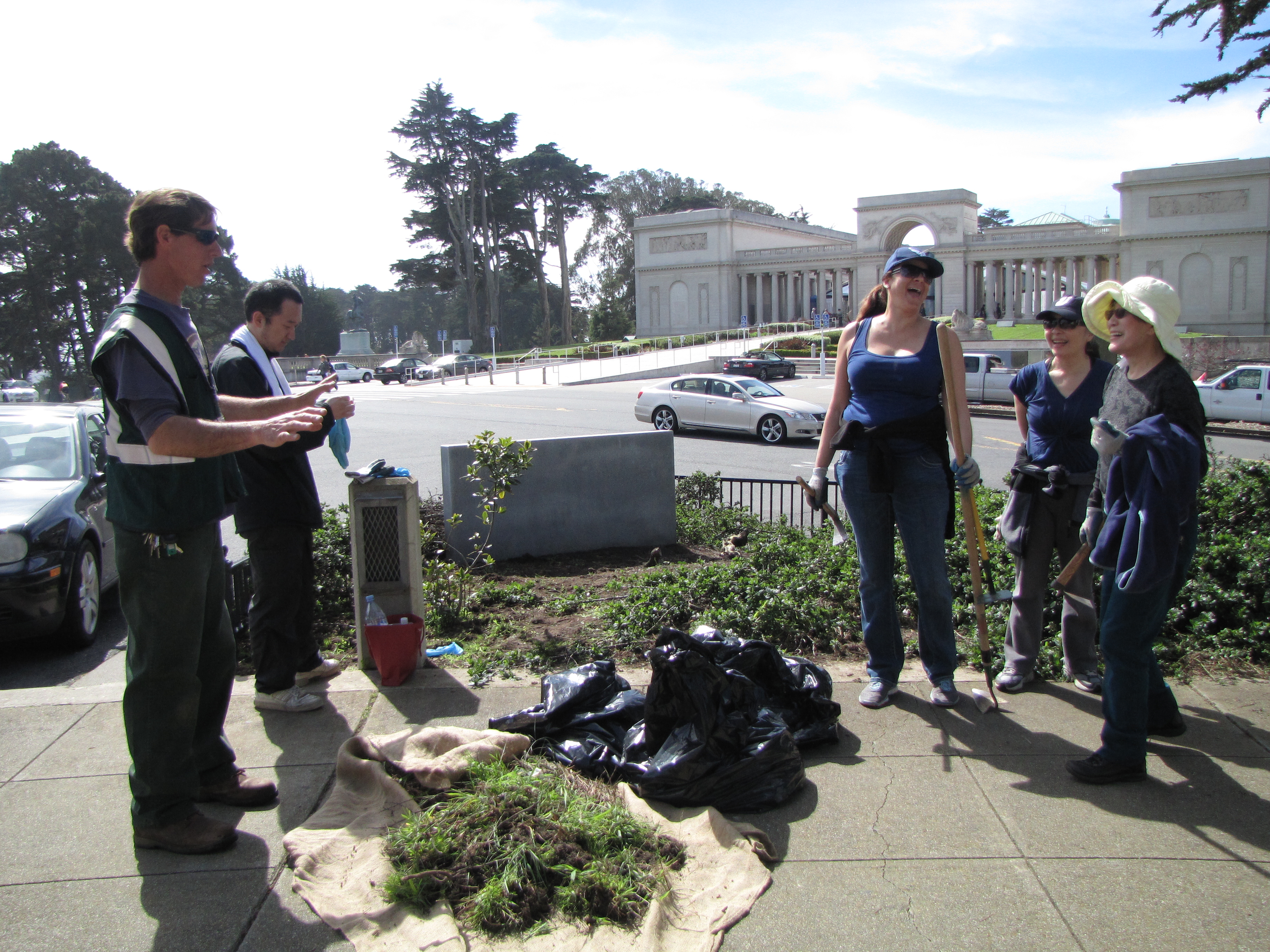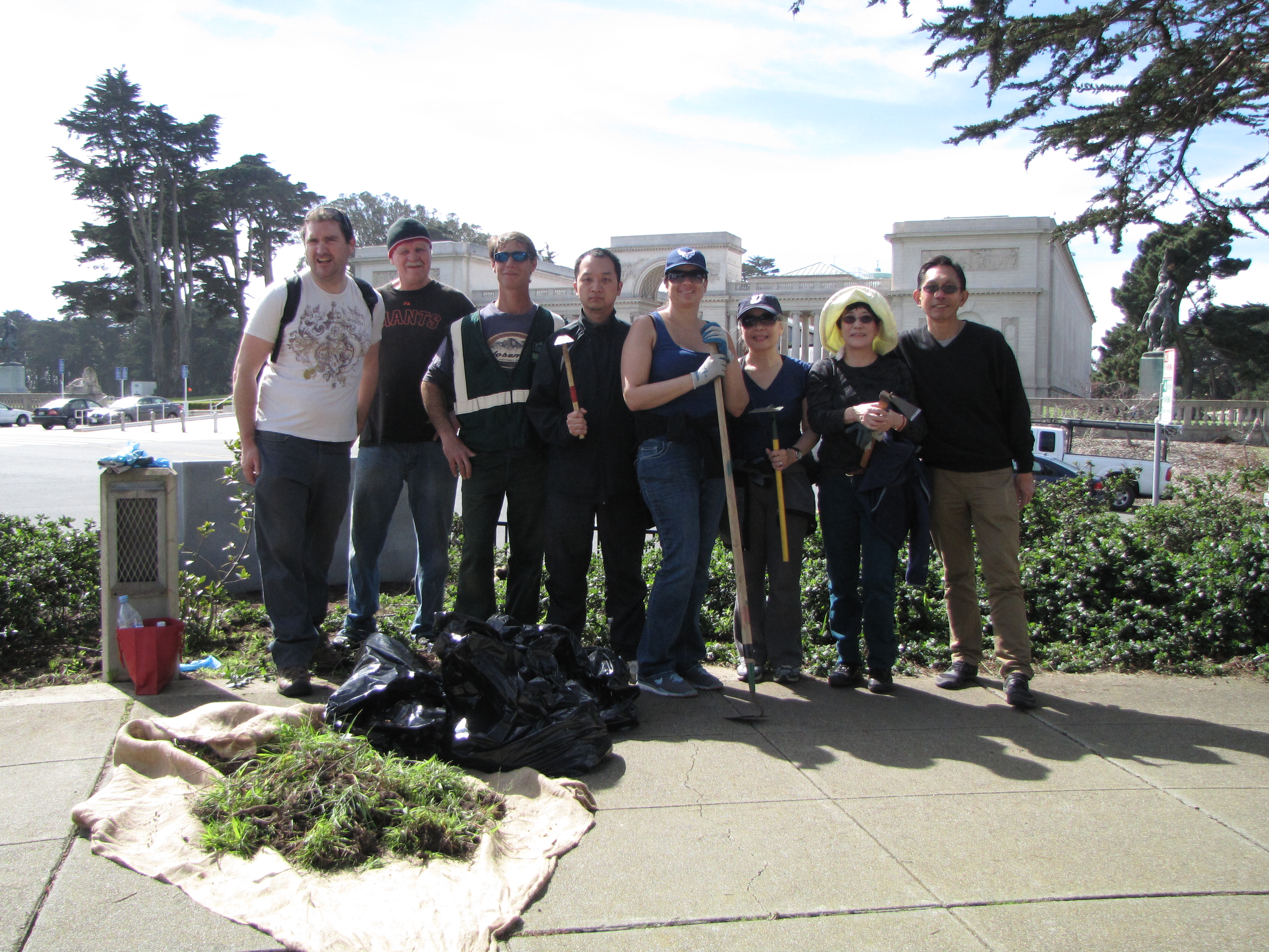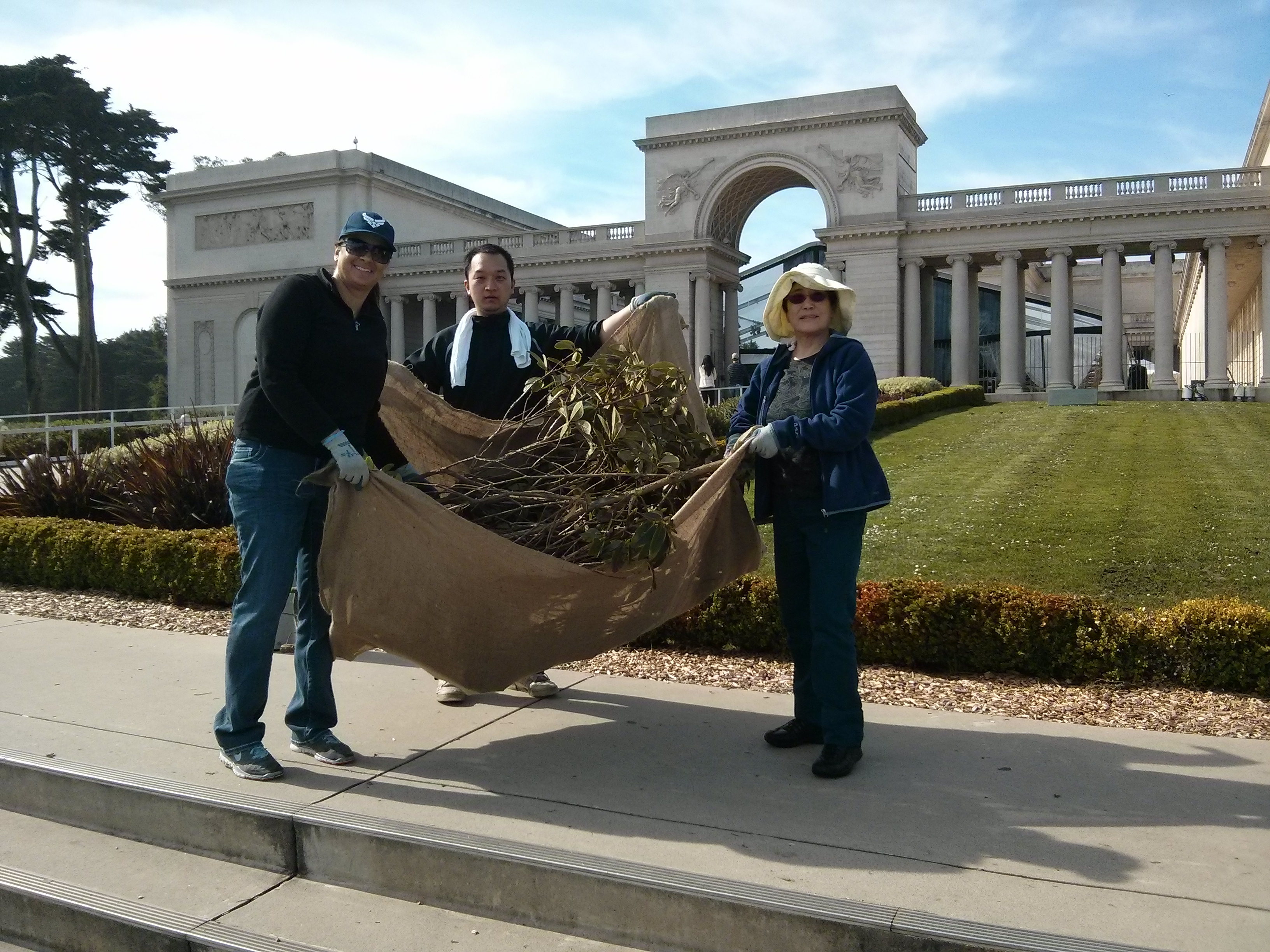 Saturday morning the 8th of march 2014 from 9am to 1pm was a special day, whereby volunteer gardeners from the bay area turned up to give a helping hand to the san francisco’s parks and recreation department, location the legion of honour out in Lincoln Park | 100 34th Avenue San Francisco, CA 94121 | 415.750.3600 The San Francisco Recreation and Park Department provides nearly 800,000 San Franciscans with essential opportunities to maintain healthy, active lifestyles. Maintaining more than 200 neighborhood parks and playgrounds, and over 4,000 acres of recreational and open spaces. They care for more than 15 full-complex recreation centers and 44 clubhouses, as well as the Marina Yacht Harbor, Candlestick Park, the San Francisco Zoo, and the Lake Merced Complex. The city’s parkland includes 9 swimming pools, 6 golf courses, 151 tennis courts, 44 ball diamonds, 72 basketball courts, 35 community gardens, and 27 off-leash dog areas. Sharp Park in Pacifica and Camp Mather in the High Sierras provide San Franciscans with an essential escape from our urban environment. All of these green spaces and facilities add immensely to the quality of life of all San Franciscans. They are dedicated to maintaining and improving these resources, but they need your help, click below on the link to find out more info on how to volunteer.